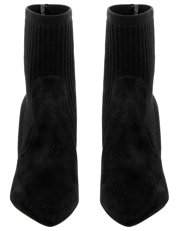 An on-trend sock boot with a point toe set on an everyday heel height.