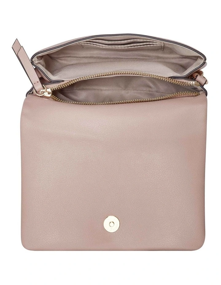 The Emmaline Mini Crossbody Flap from Nine West is pretty and practical. Featuring a sleek rectangular shape, this mini is designed with blushing pink vegan leather. Exquisite elements like gold chain detailing and an embossed logo design make this bag the perfect weekend accessory.