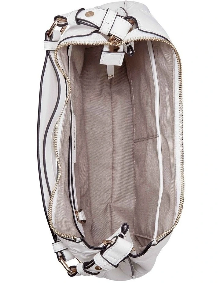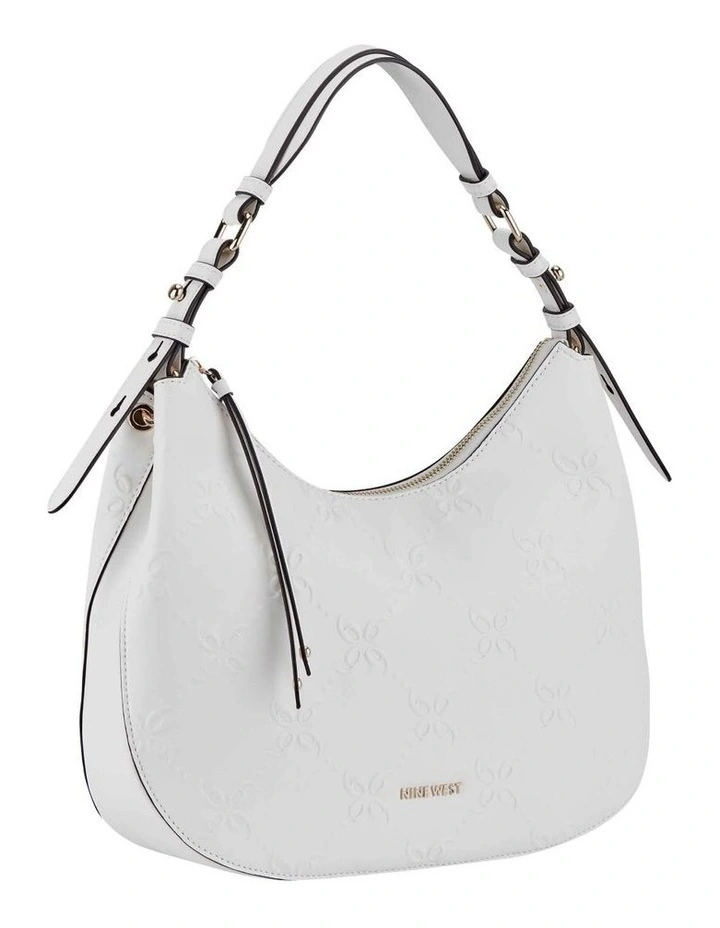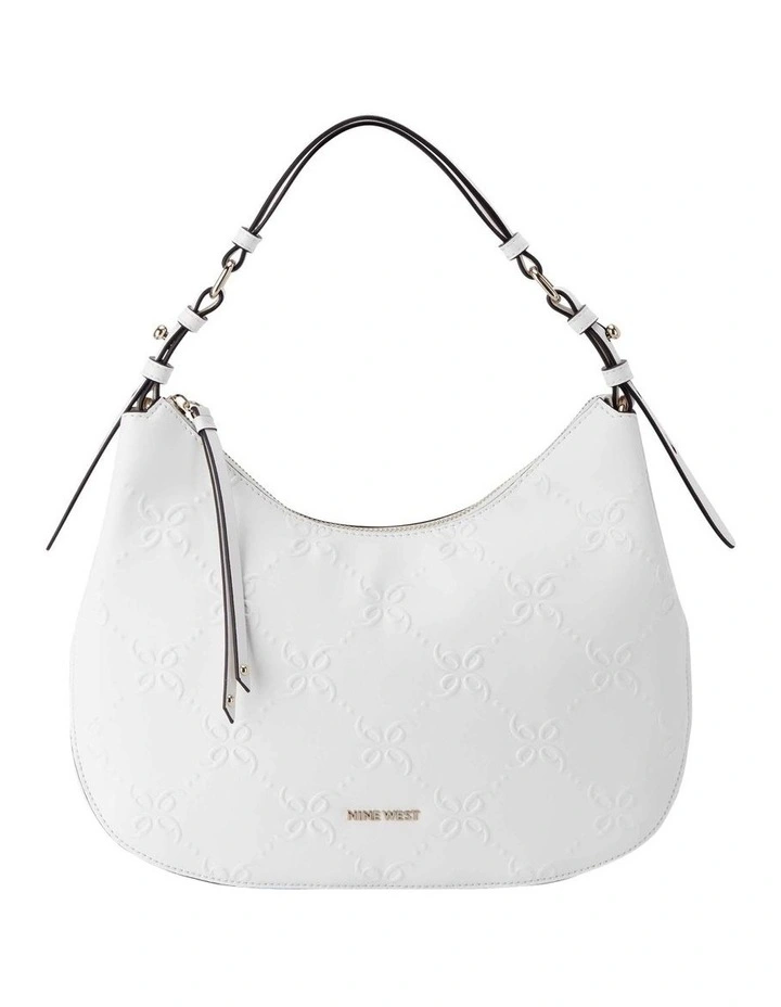 The Irina hobo bag by Nine West is an adorable addition to this season’s collection. Featuring a unique rounded shape, this everyday bag is finished with delicate strappy details. Optic white PU leather adds a bright twist to this luxury inspired cutie.