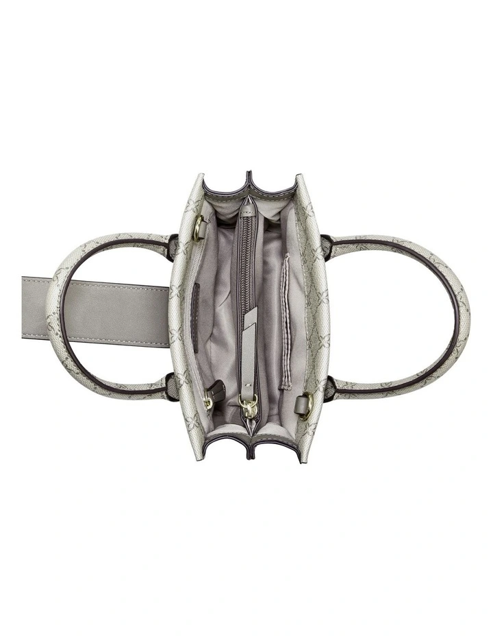 A debut for any season, the Kathy Mini Jet Set Tote from Nine West will sit by your side with its structured silhouette or hang across your body with the single adjustable strap. On the outside, the leather-look bag is finished with all-over logo detailing. When paired with its internal pockets and magnetic closure, this crossbody bag is the perfect fusion of functional and stylish.Â