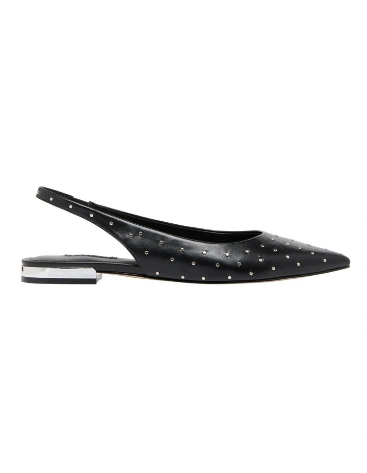 Fashionable yet functional, the Lucee Flat is this season s new favourite go-to. With a classic pointed toe, Lucee is sophisticated yet ultra-trendy with a slingback silhouette to shakeup your shoedrobe essentials. The stud embellishments, creating a statement feature are complimented by the slight polished flat heel. Update your fancy fits by adding Lucee into your work and weekend rotation.