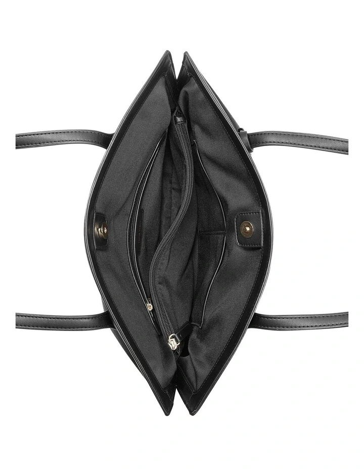 With its contemporary curved shape, twin top handles and gold trim details, the black Nemi Jet Set Tote from Nine West is a traditional shopper…with an on-trend twist.