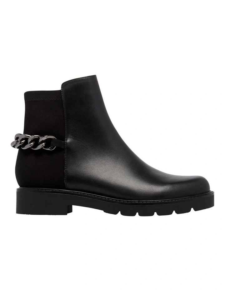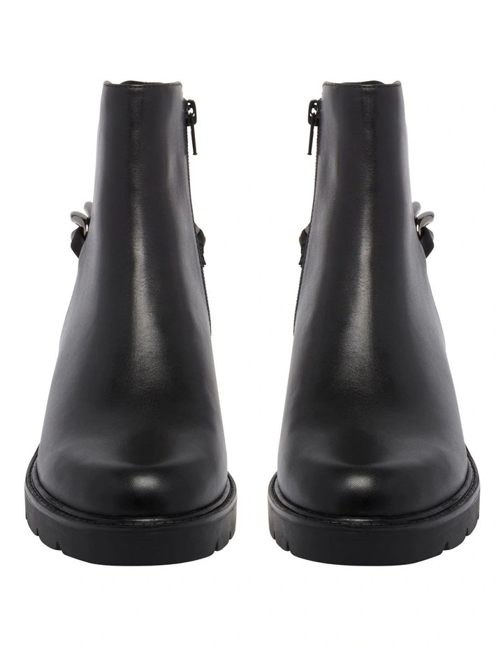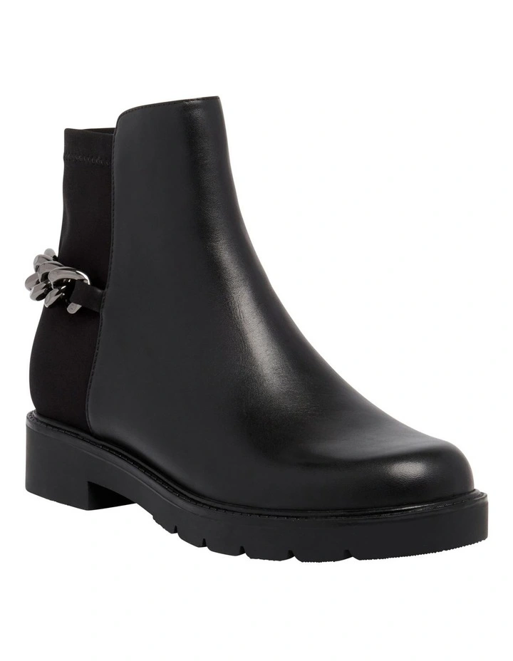 The Talles Boot combines a classic Chelsea boot aesthetic with a chunky sole trend. This rounded toe ankle boot, is defined by it’s two-tone textured body and distinguished by its chunky chain detail around the back of the ankle. The chunky sole of Talles is ideal for a durable and sturdy wear while the side zip on the inner of the ankle means you can effortlessly slide into Talles for a stylish wear.