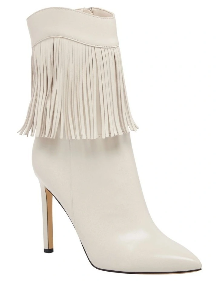 The Tries boot is bound to turn heads with a statement fringe and sky high stiletto heel. This ankle boot features a softly sculpted pointed toe, subtle stitching details and playful suede fringe that is a modern take on the classic western boot. The side zip on the inner ankle means Tries is easy to slide into and wear from day to night.